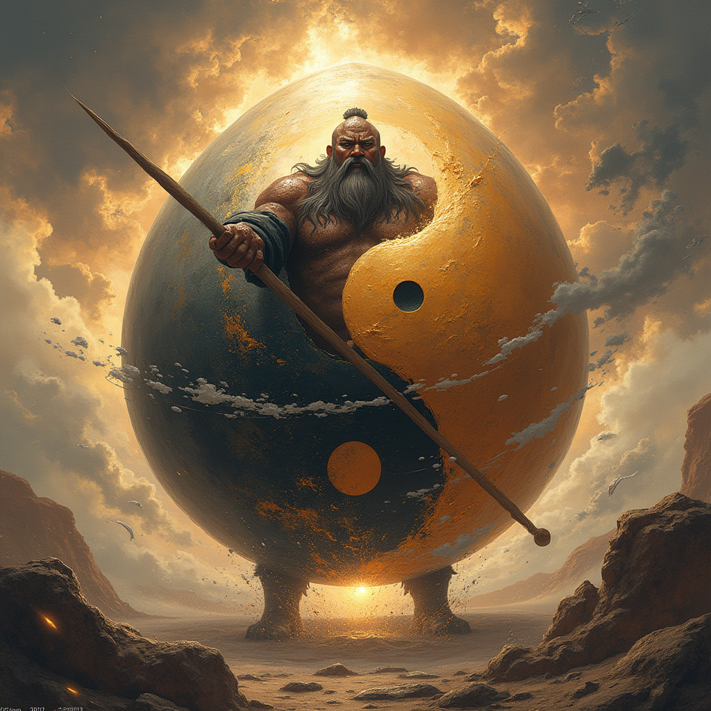 그런데, 반고가 세상을 만든 후에는 죽었는데, 그때 반고의 몸은 자연의 일부로 변했어. 그의 숨결은 바람이 되었고, 몸은 산과 강으로 변했다고 해. 이런 이야기를 통해서 중국 사람들은 세상이 이렇게 만들어졌다고 믿었단다.