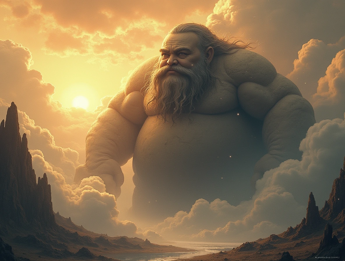 반고는 자신의 몸을 이용해서 하늘과 땅을 밀어냈다고 전해져. 그는 매일매일 하늘을 높이고, 땅을 더 깊게 만들어서 점점 우주를 펼쳐나갔지. 반고는 하늘이 점점 더 높아지고, 땅은 점점 더 깊어지도록 계속해서 밀어냈어. 이렇게 해서 반고는 하루가 다르게 우주를 확장시켰고, 그가 한 일은 세상의 기초를 만드는 일이었지. 왠지 하늘을 짊어지고 땅을 받치는 모습이 그리스 신화에 등장하는 아틀라스가 떠오르네. 아틀라스의 과업도 하늘을 떠받치는 역할이었지. 하늘이 무너져 땅을 뒤덮지 않도록 말이야.